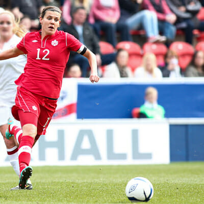 Christine Sinclair est la joueuse de football la plus titrée à avoir jamais porté les couleurs du Canada. Elle a fait ses débuts avec l’équipe nationale senior à l’âge de 16 ans, lors de la Coupe de l’Algarve 2000, où elle a également marqué son premier but international.